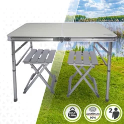 AKTIVE – Table Pliante Avec 2 Tabourets Et Poignée De Transpor, Gris