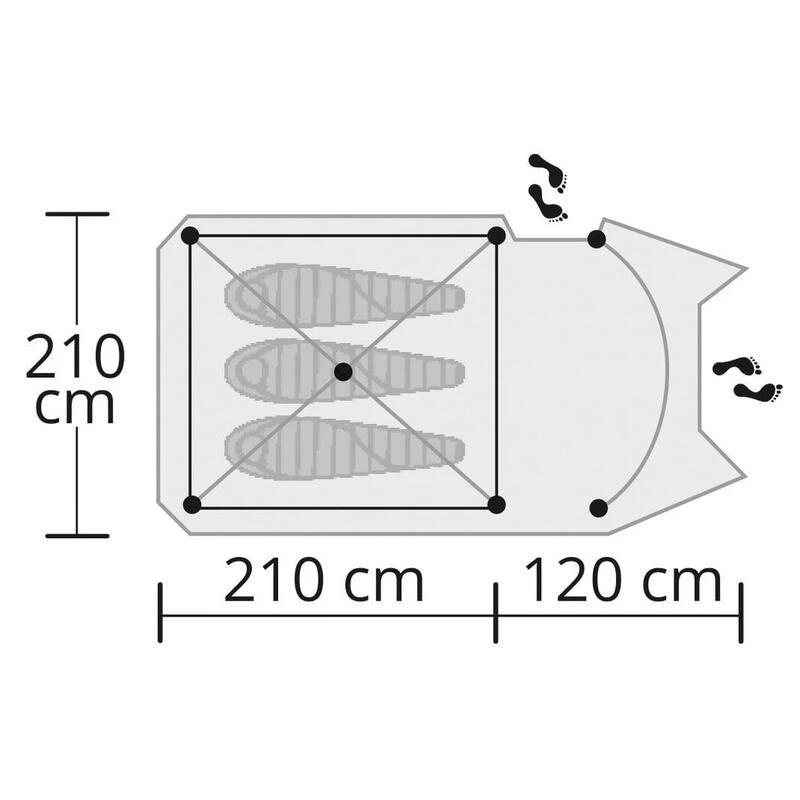 Tente de 3 personnes robuste, avec une tente intérieure et une tente extérieure. Auvent spacieux pour plus de rangement ou de cuisine. Léger, compact et entièrement étanche.